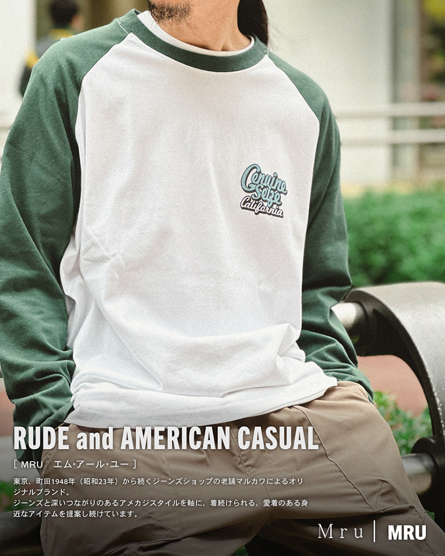 MRU エムアールユー Tシャツ メンズ 春服 ラグラン バック ロゴ プリント 長袖 ロンT(0115030046)