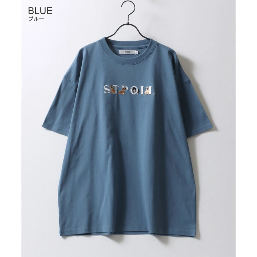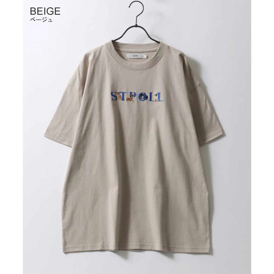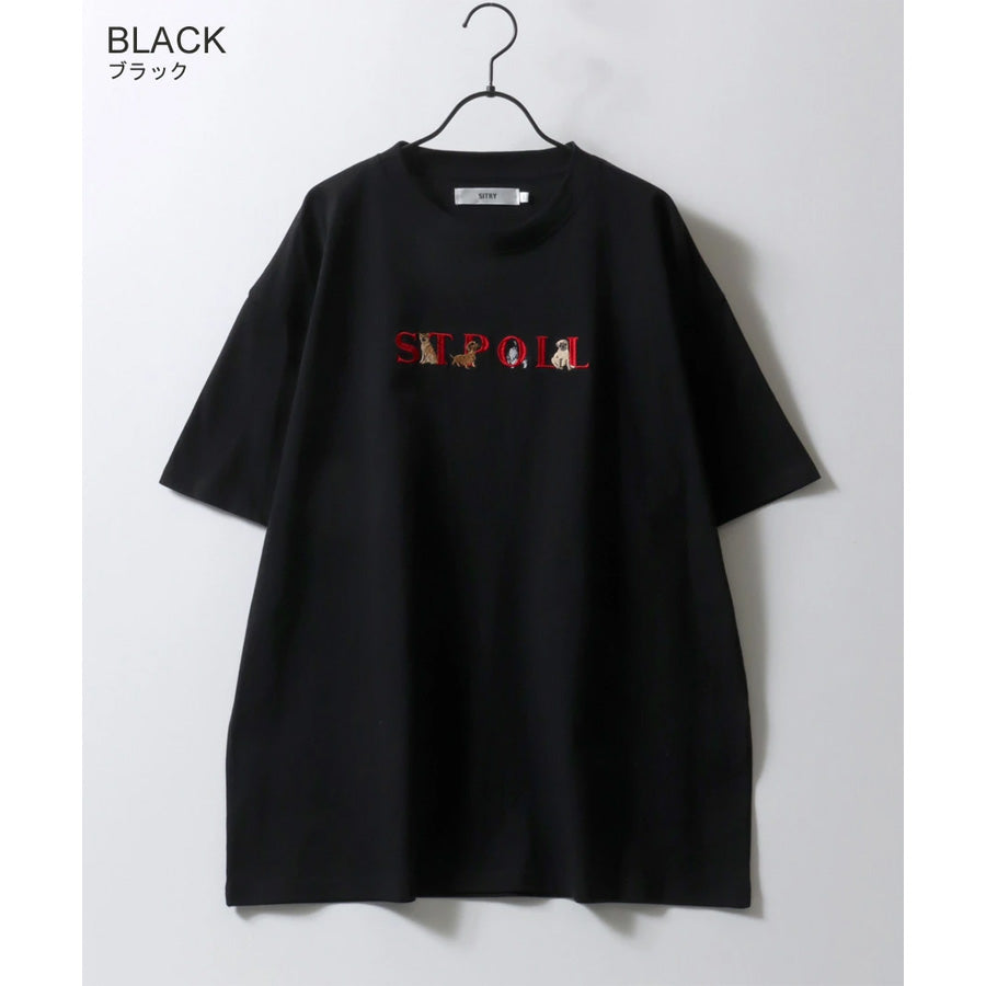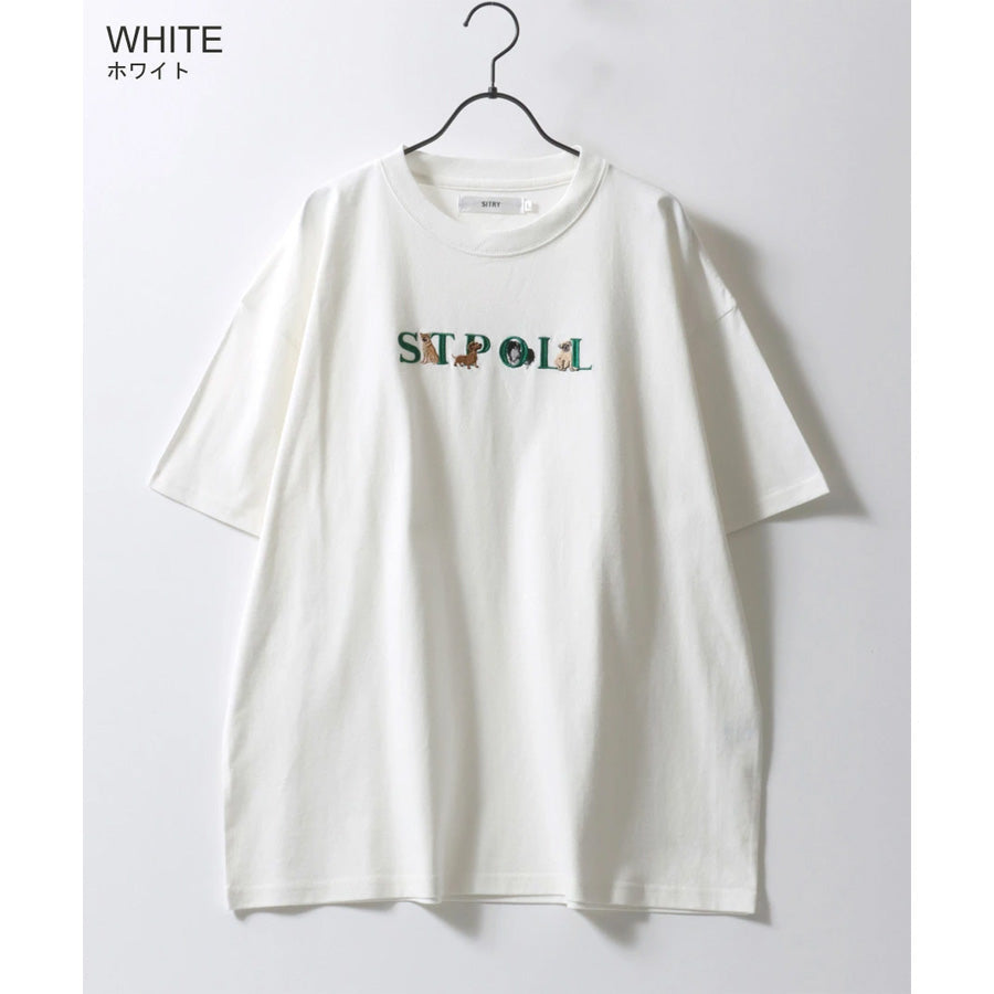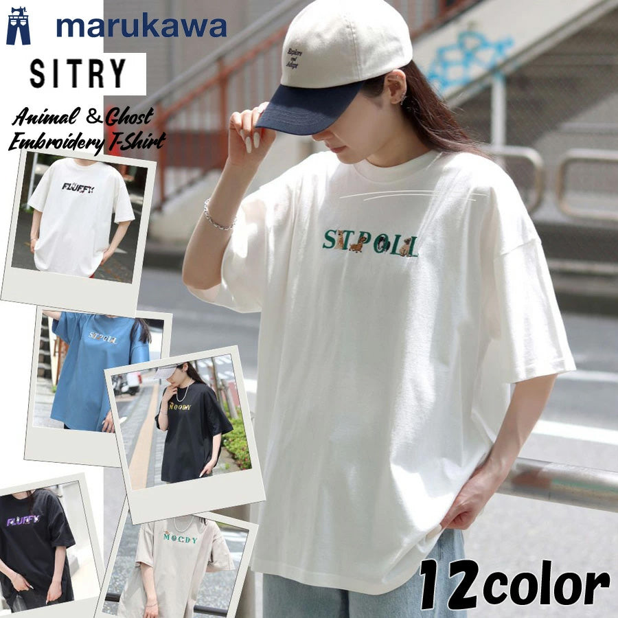 SITRY シトリー Tシャツ 半袖 メンズ レディース ユニセックス 綿100 別注 オーバーサイズ ビッグシルエット ワイドシルエット アニマル ゴースト ワンポイント刺繍 カットソー トップス(0115130027)