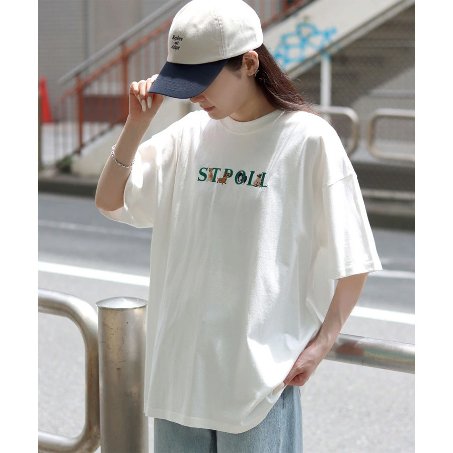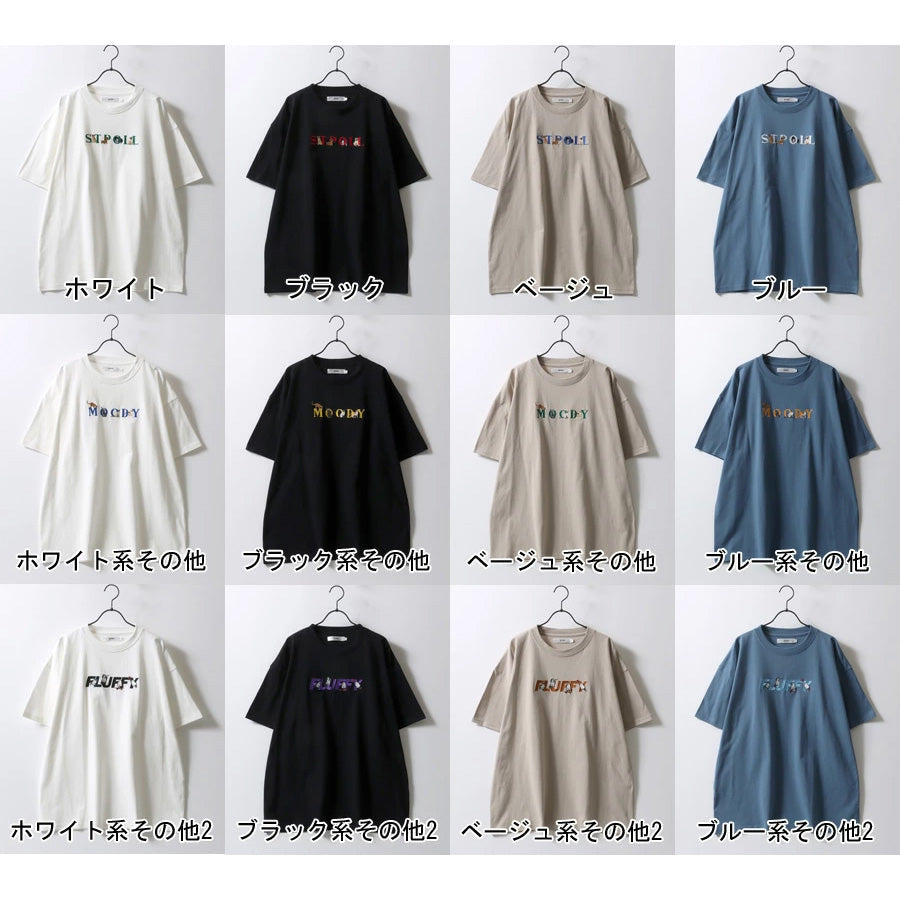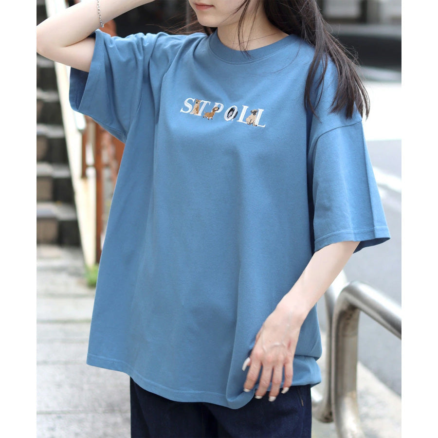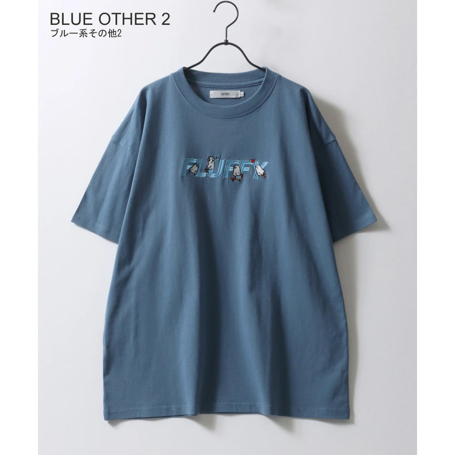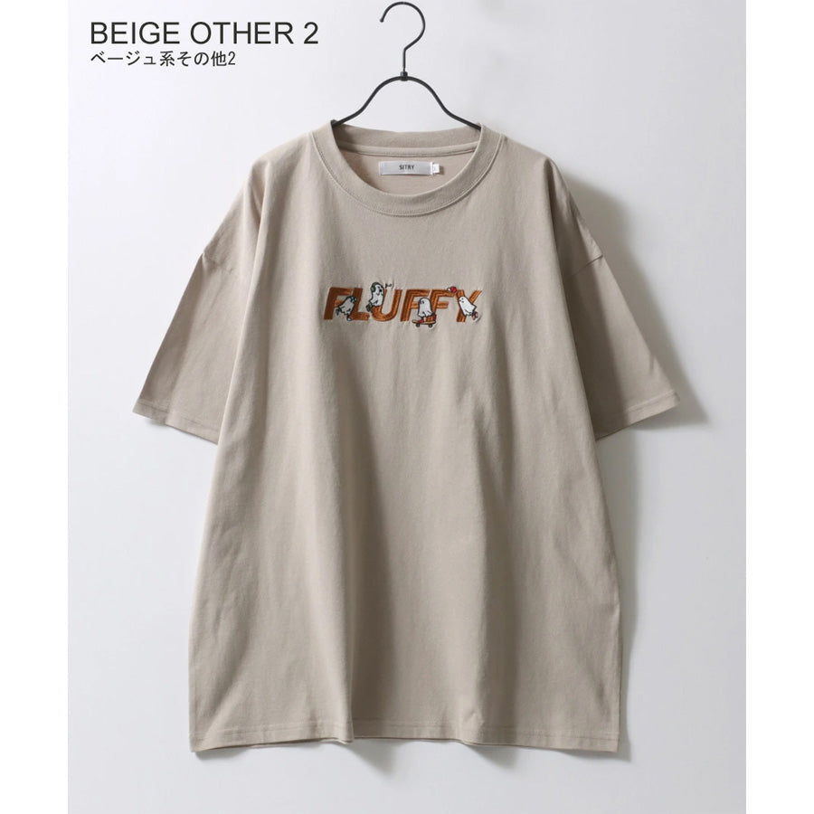 SITRY シトリー Tシャツ 半袖 メンズ レディース ユニセックス 綿100 別注 オーバーサイズ ビッグシルエット ワイドシルエット アニマル ゴースト ワンポイント刺繍 カットソー トップス(0115130027)