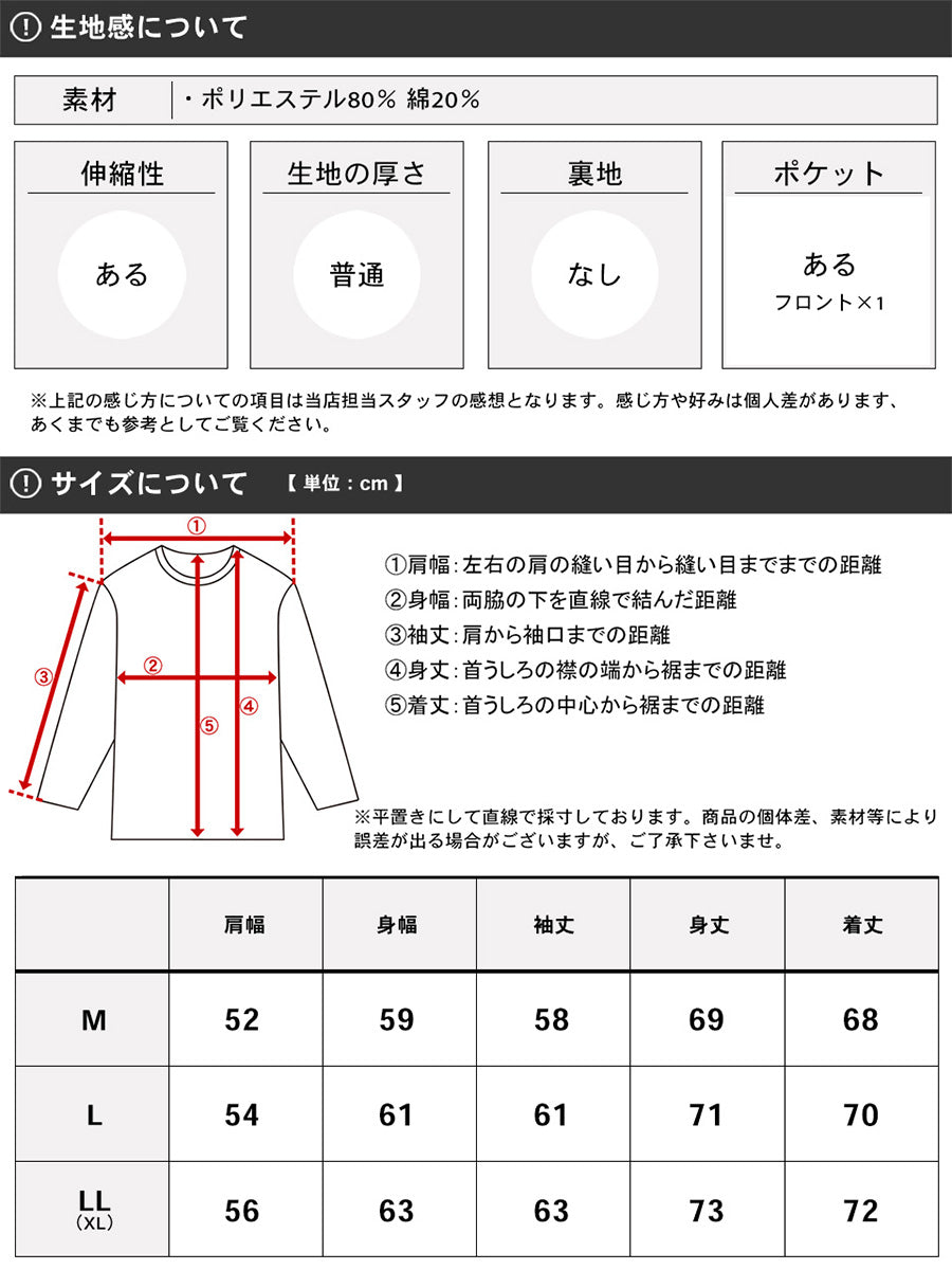 肩幅52cm 身幅59cm 袖丈58cm 身丈69cm 着丈68cm (下札表示対応サイズ)胸囲84~92cm