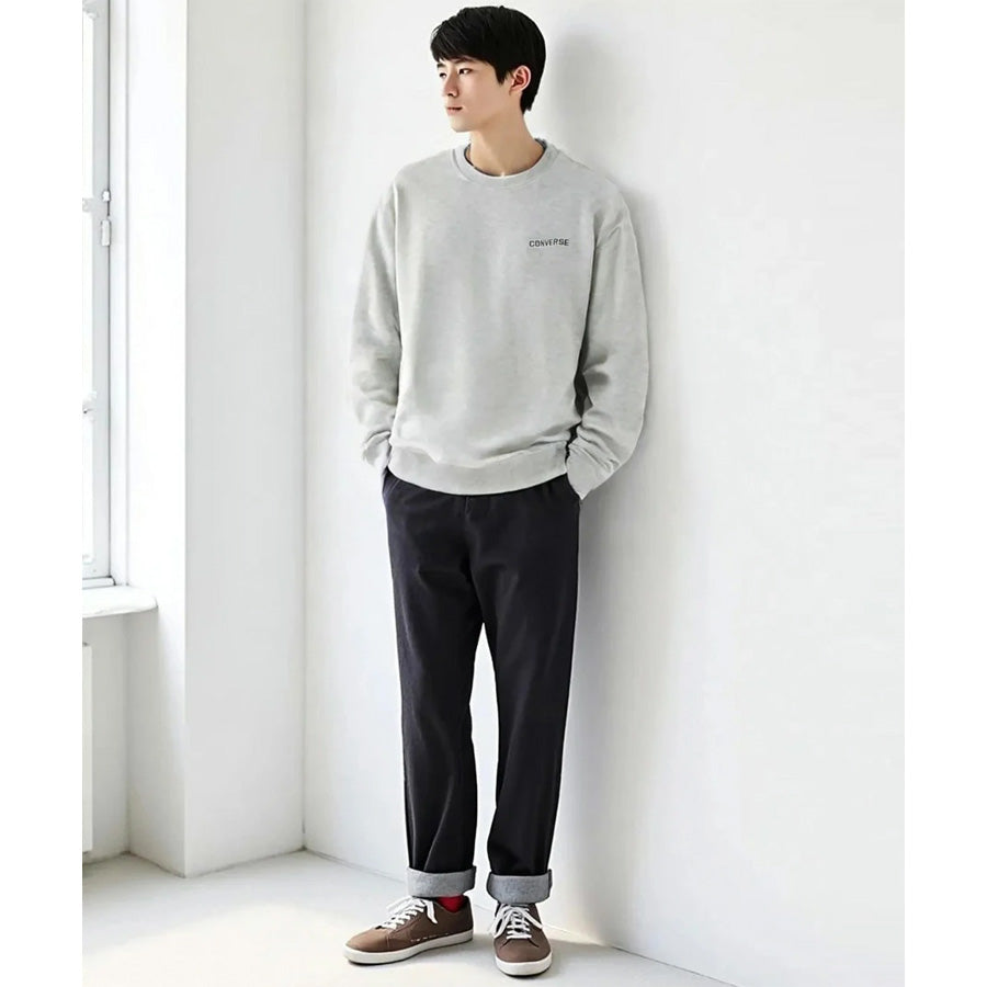 CONVERSE コンバース ワンポイント ロゴ 刺繍 裏毛 クルーネック スウェット トレーナー(0122280316)