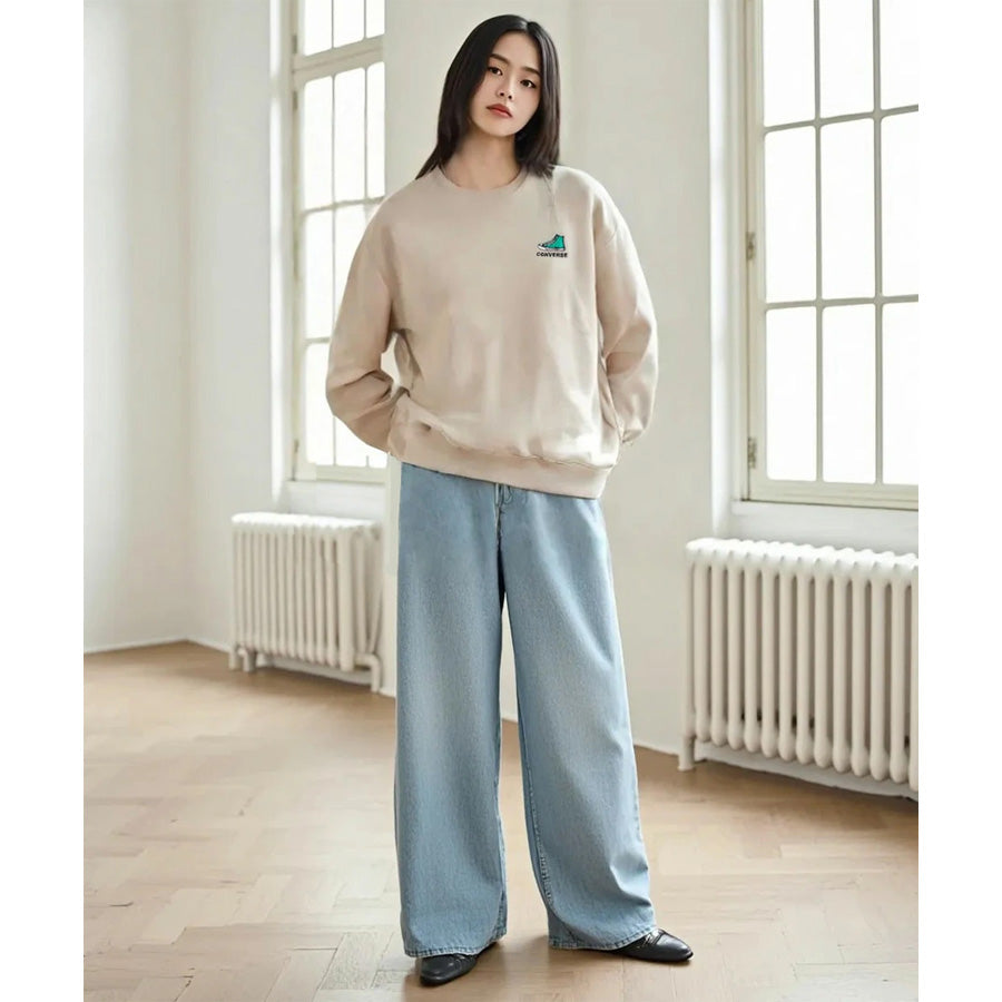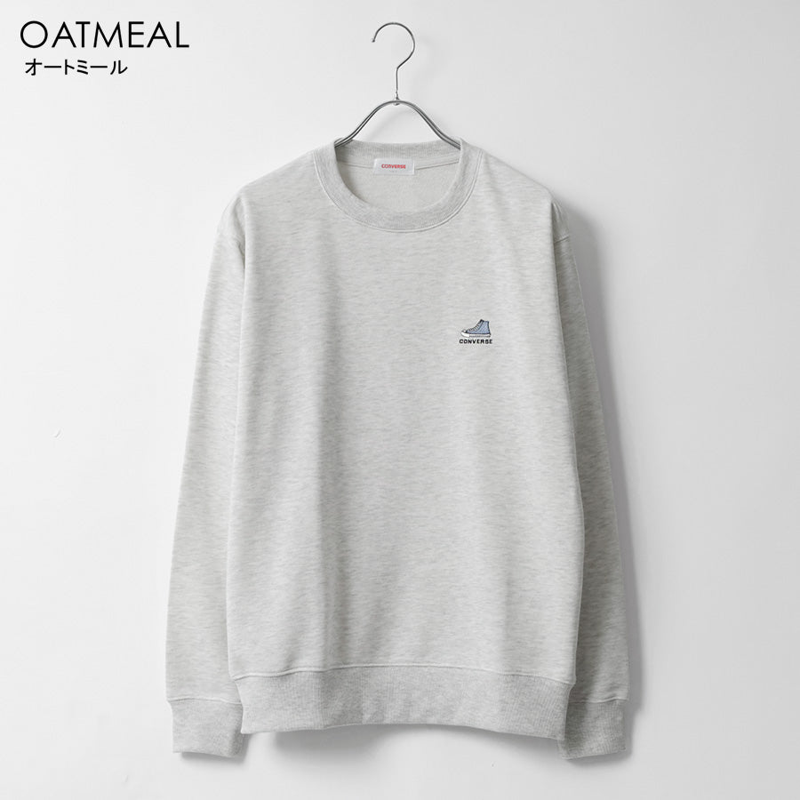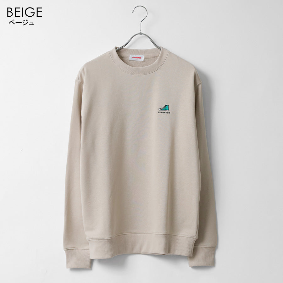 CONVERSE コンバース ワンポイント 靴 刺繍 裏毛 クルーネック スウェット トレーナー(0122280317)