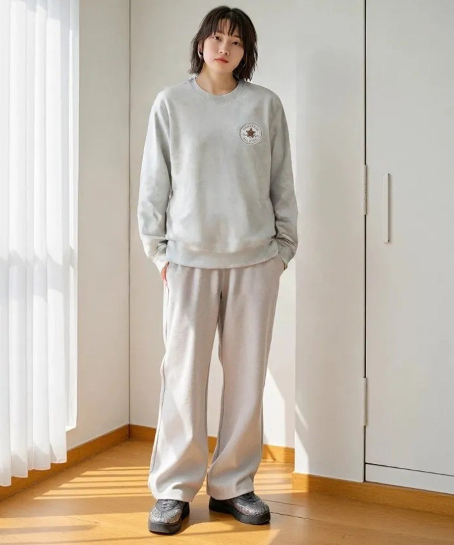 CONVERSE コンバース ワンポイント ロゴ 刺繍 裏毛 クルーネック スウェット トレーナー(0122280318)