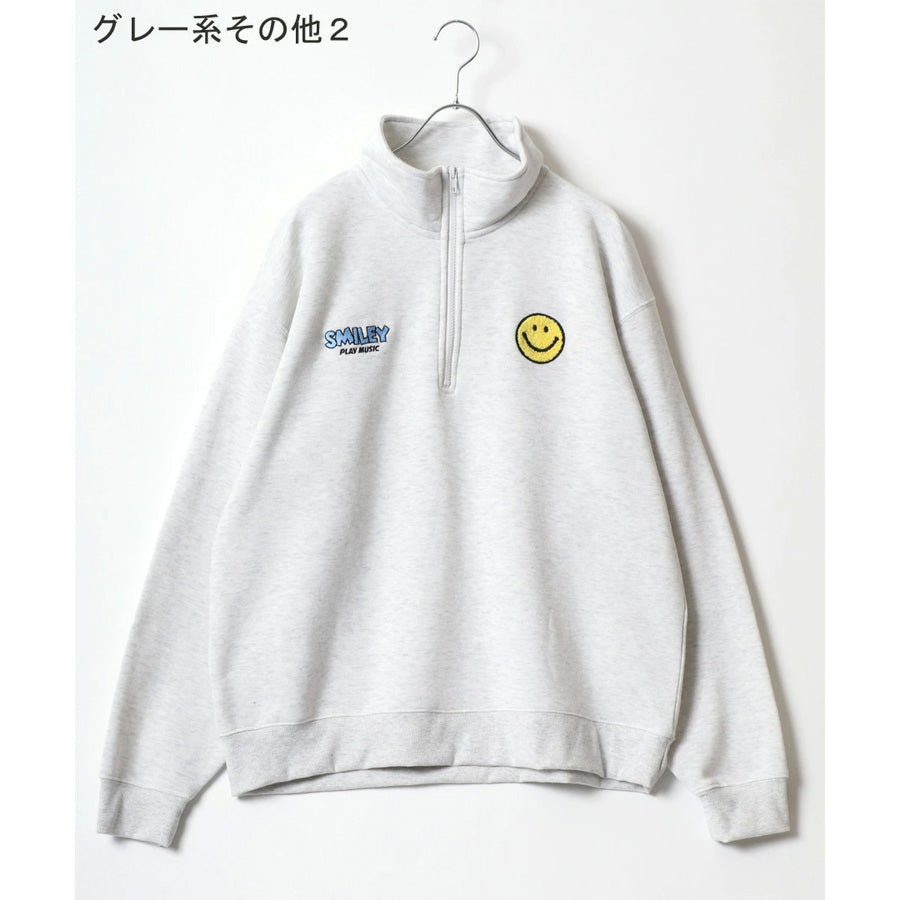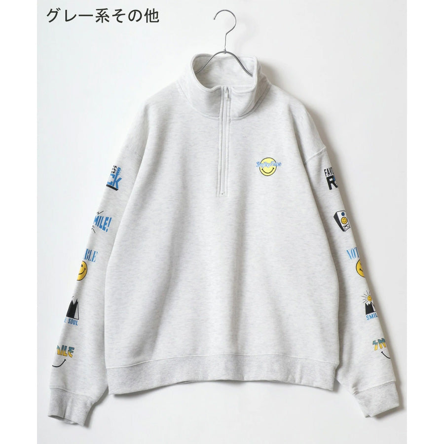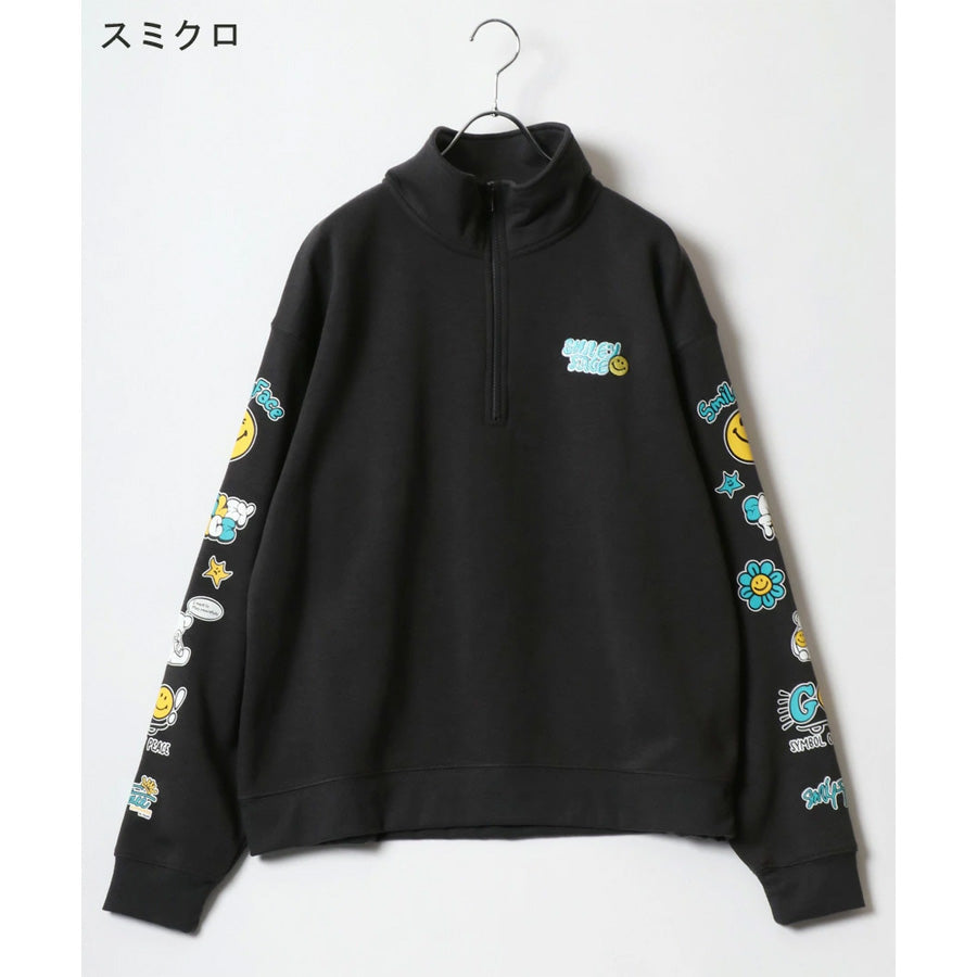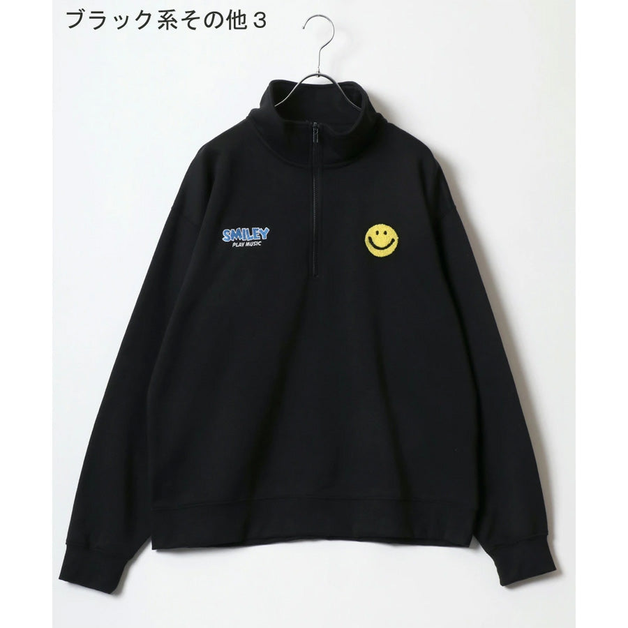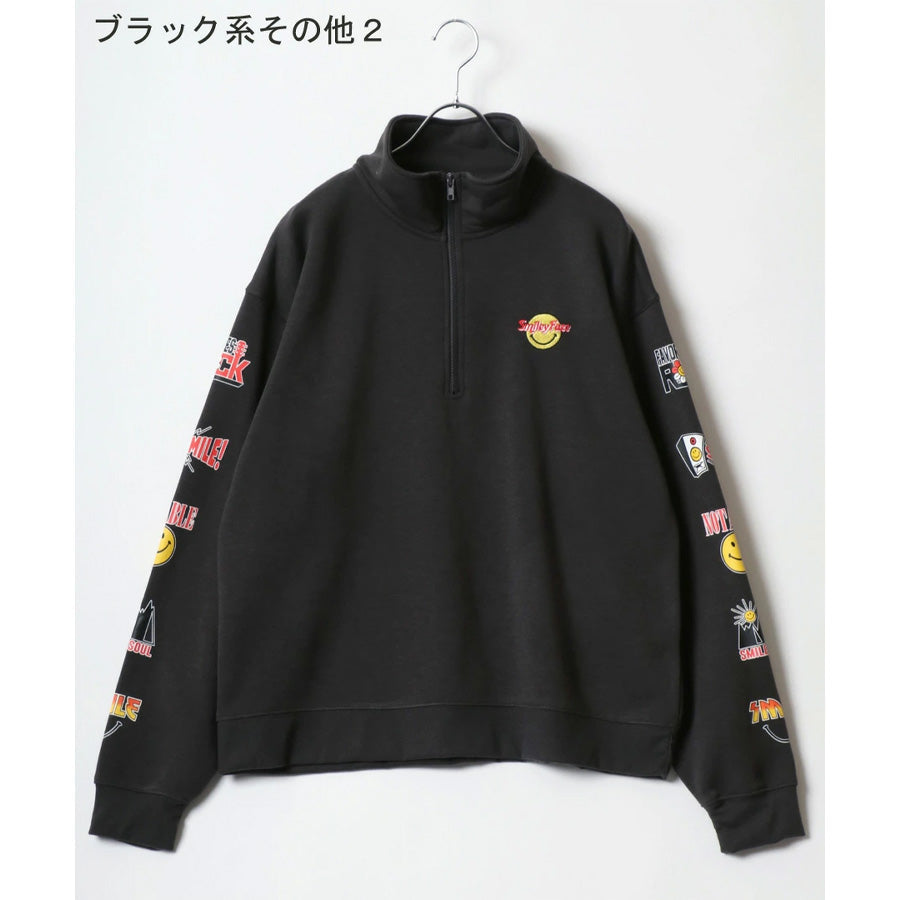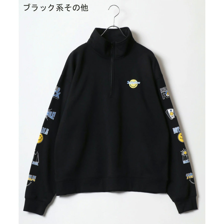 SMILEY FACE スマイリーフェイス スウェット トレーナー メンズ 裏起毛 ビッグシルエット ゆったり ハーフジップ シンプル ロゴ入り 長袖 大きいサイズ レディース(0122510147)