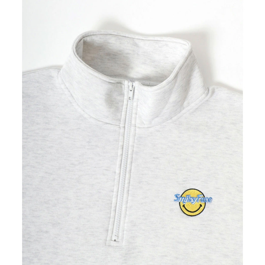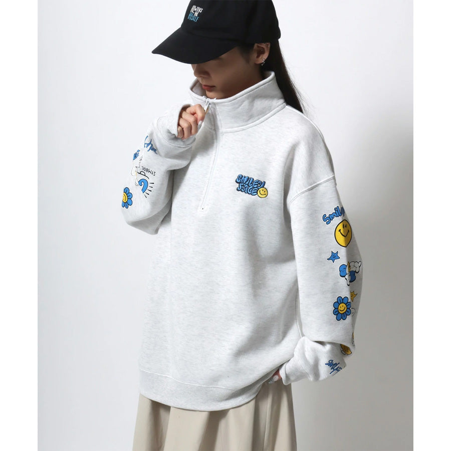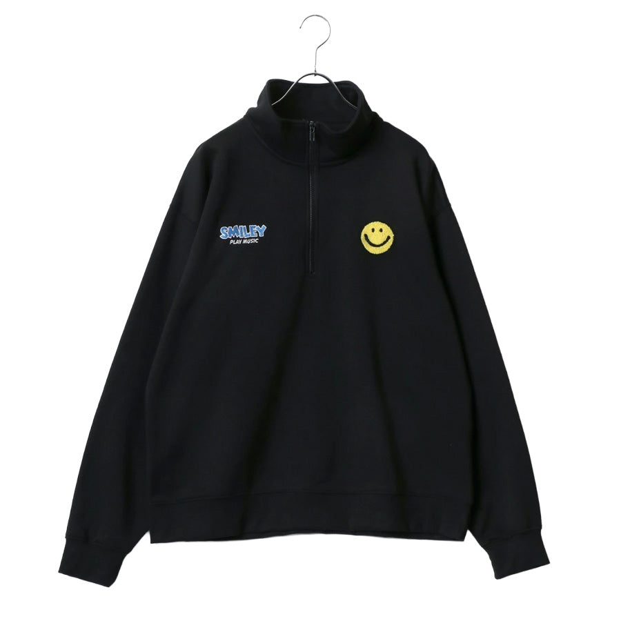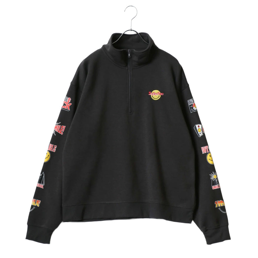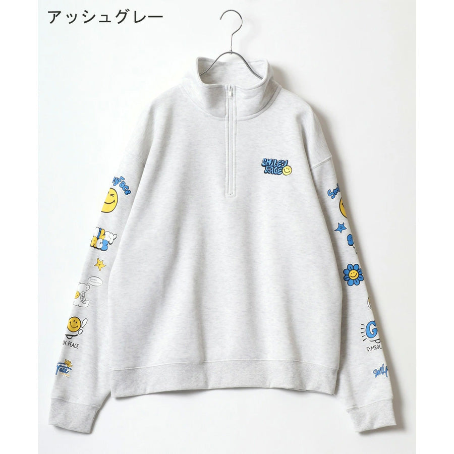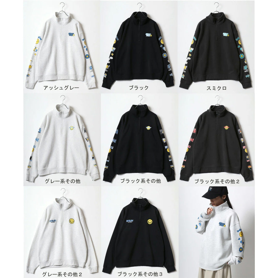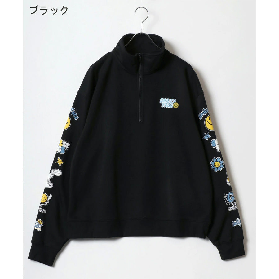 SMILEY FACE スマイリーフェイス スウェット トレーナー メンズ 裏起毛 ビッグシルエット ゆったり ハーフジップ シンプル ロゴ入り 長袖 大きいサイズ レディース(0122510147)