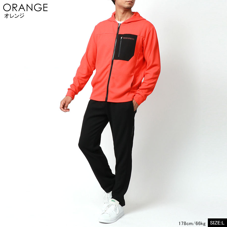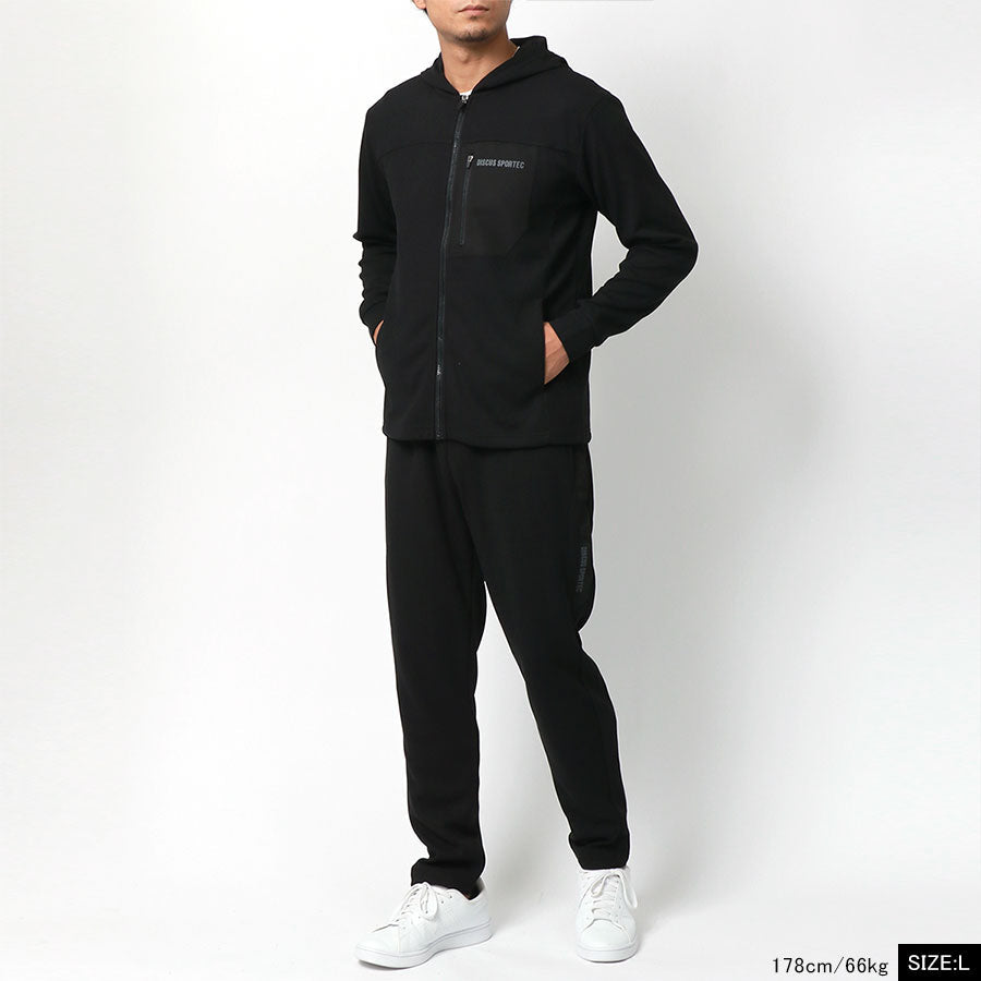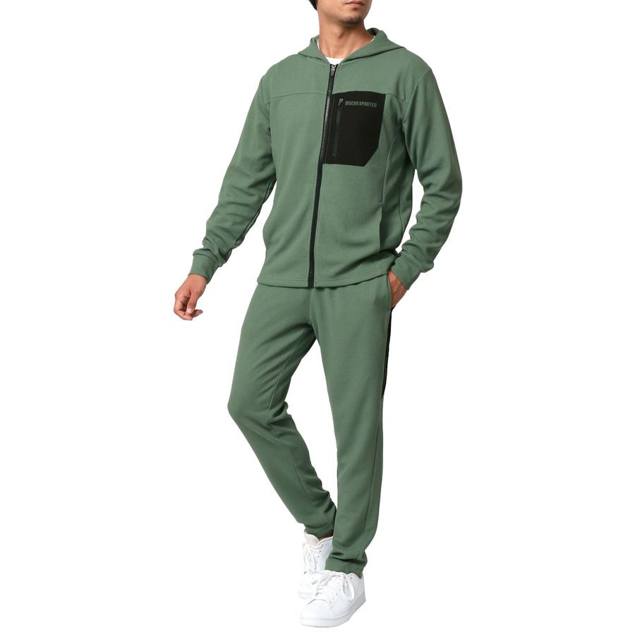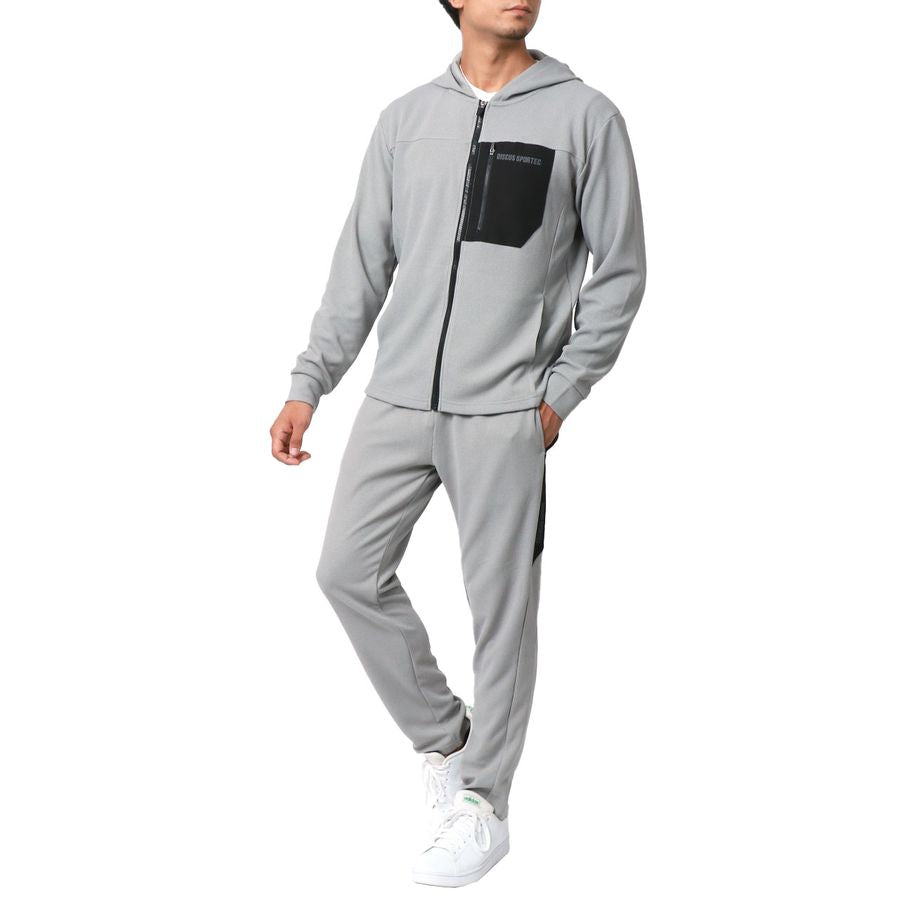 ・別布切替えデザインがさりげなく個性を演出するフルジップパーカー上下セット。ワッフル生地は伸縮性があり、さらにイージーウエスト仕様なのでリラックスした穿き心地なのも◎。吸汗速乾機能をプラスしたドライな素材を使用しているので、トレーニング着としても幅広く活躍してくれます。