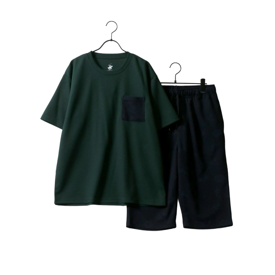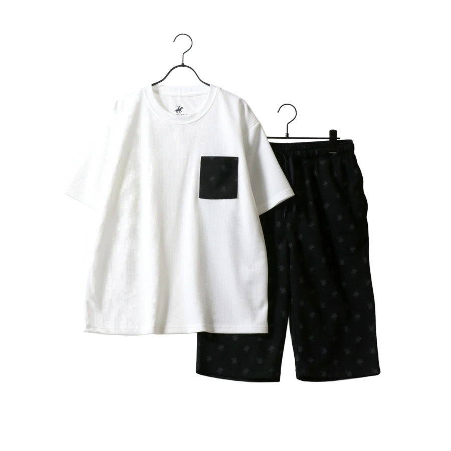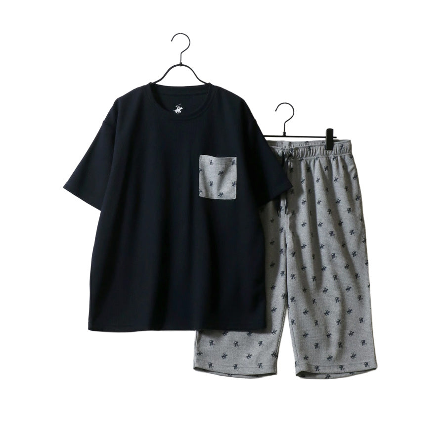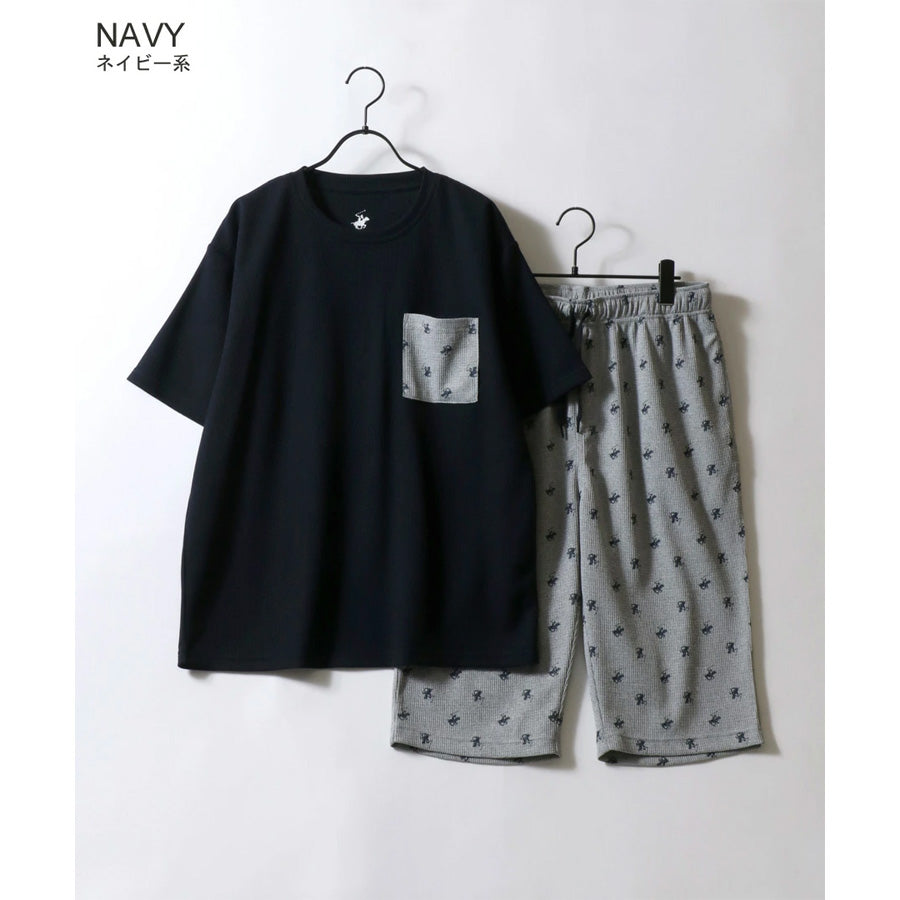 BEVERLY HILLS POLO CLUB ビバリーヒルズポロクラブ 上下セット 夏用 セットアップ メンズ レディース ユニセックス 別注 ルームウェア 部屋着 パジャマ ナイトウェア 半袖Tシャツ ハーフパンツ ドライワッフル(0162280054)