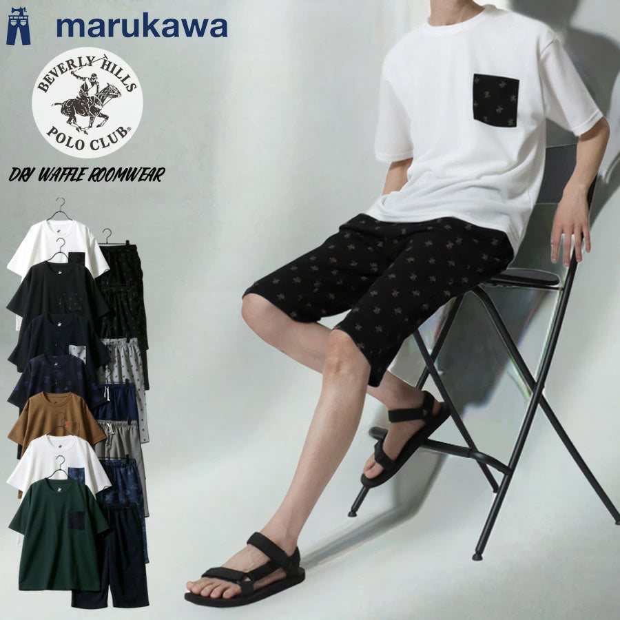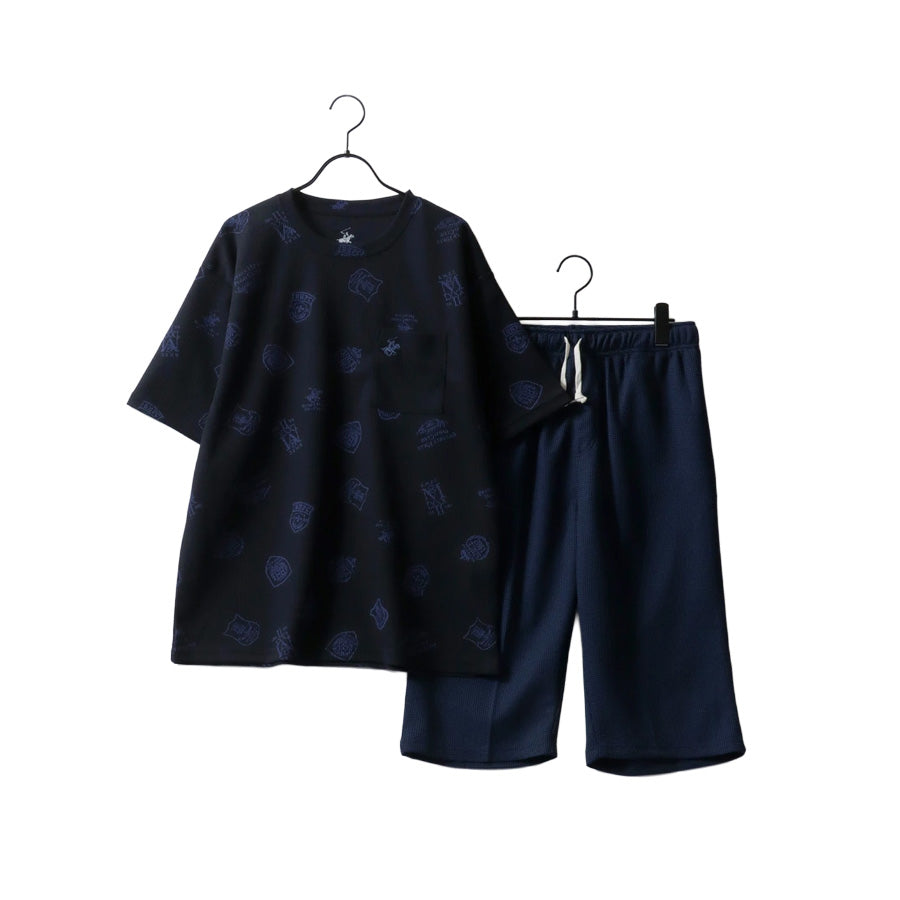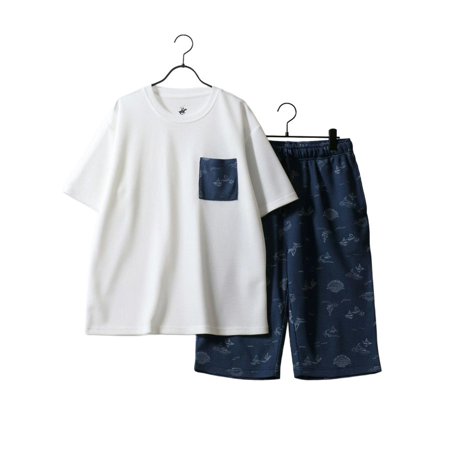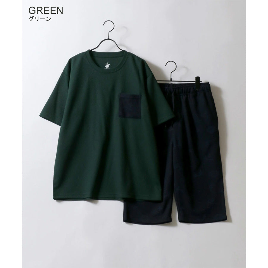BEVERLY HILLS POLO CLUB ビバリーヒルズポロクラブ 上下セット 夏用 セットアップ メンズ レディース ユニセックス 別注 ルームウェア 部屋着 パジャマ ナイトウェア 半袖Tシャツ ハーフパンツ ドライワッフル(0162280054)