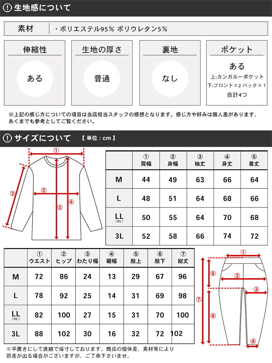 肩幅48cm 身幅51cm 袖丈64cm 身丈68cm 着丈66cm ウエスト78cm ヒップ92cm わたり幅25cm 裾幅14cm 股上31cm 股下69cm 総丈98cm