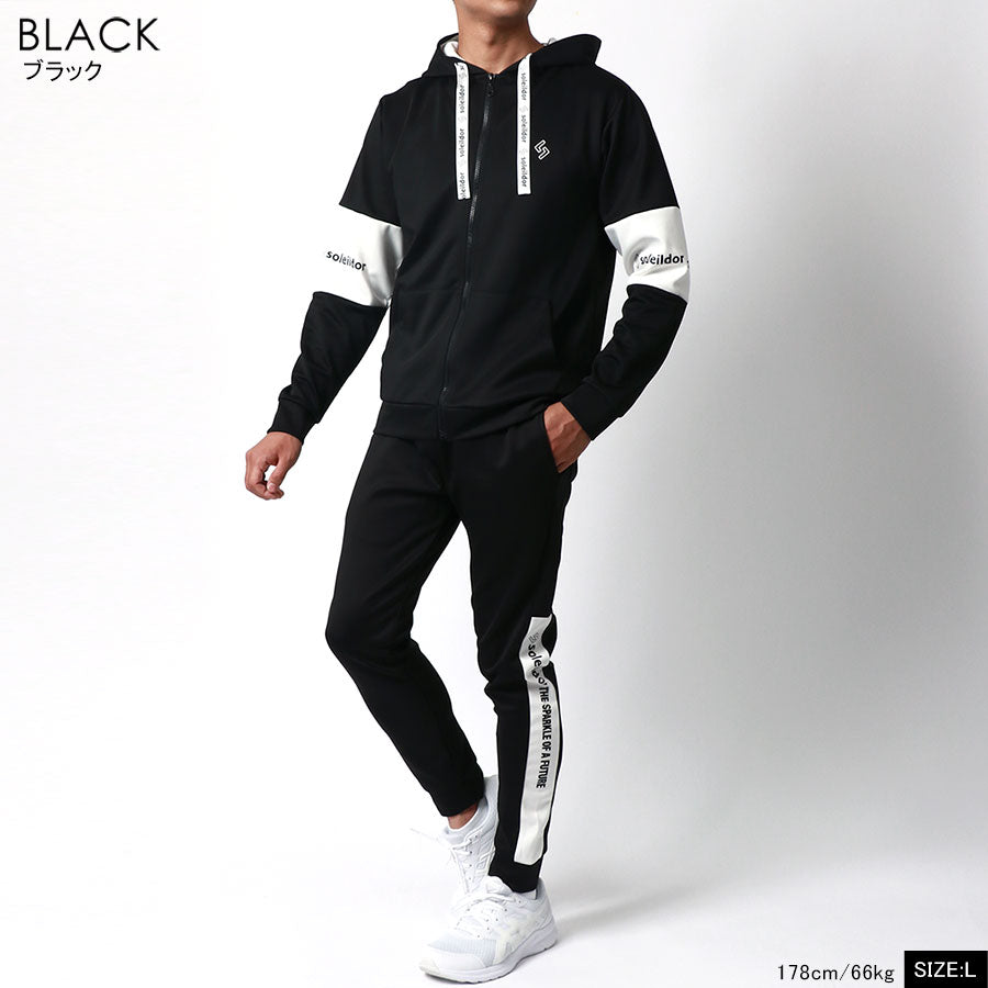 soleildor ソレイルドール 長袖 上下 セットアップ 袖 切替え スポーツ トレーニング ルームウェア 部屋着(0165030011)