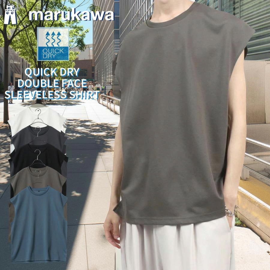 marukawa ドライ ダブルフェイス ポンチ ノースリーブ メンズ レディース ユニセックス Tシャツ 袖なし カットソー トップス インナー 速乾性 ストレッチ イージーケア素材 とろみ 快適 着心地 ベーシック シンプル ミニマル(0183010005)