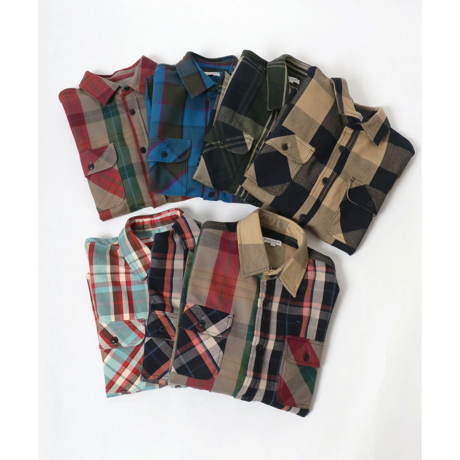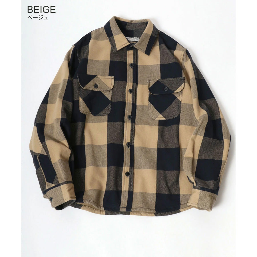 少し大きめの胸ポケットがアクセントのワーク、アメカジ、ストリートスタイルによく合うデザインです。 癖のないチェック柄で幅広いコーデに活躍します。程よい身幅と着装感で、大人のリラックスを表現。使いやすいカラー展開になります。