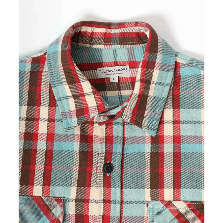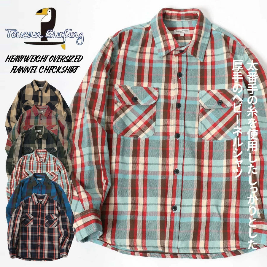 TOUCAN SURFING トゥーカンサーフィン ヘビーウェイト ネルシャツ チェックシャツ 裏起毛 綿100% ヘビーネルシャツ オーバーサイズ 厚手 アウター トップス(2141120001)