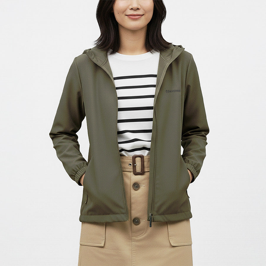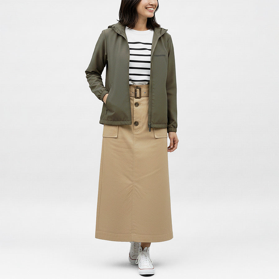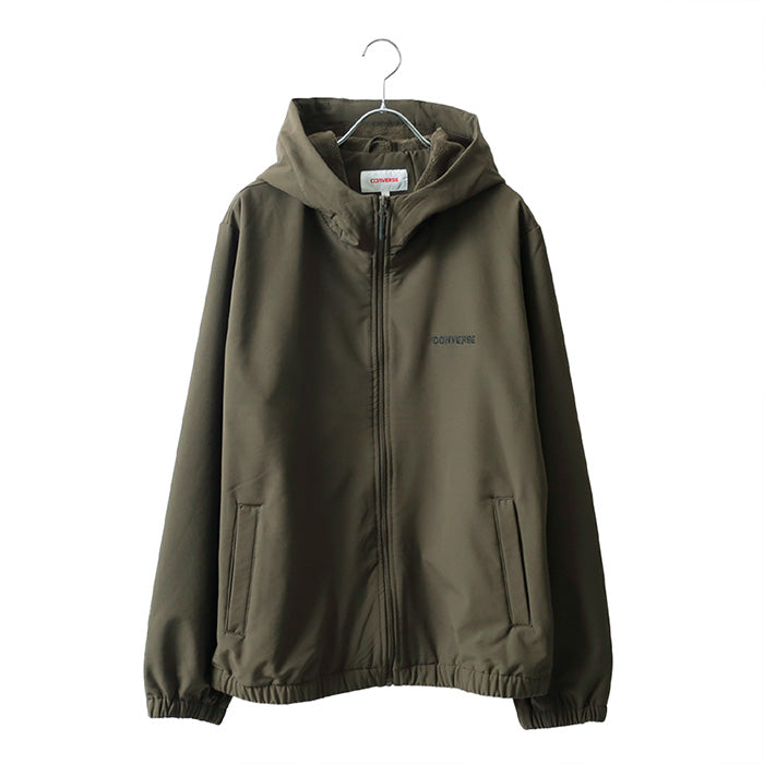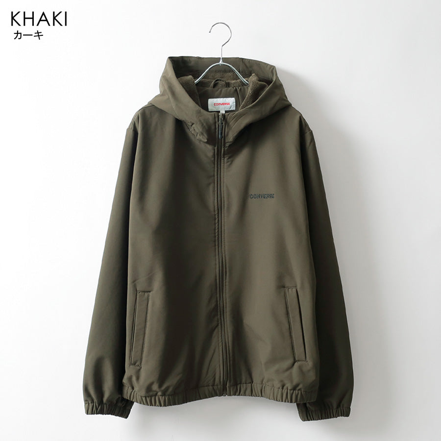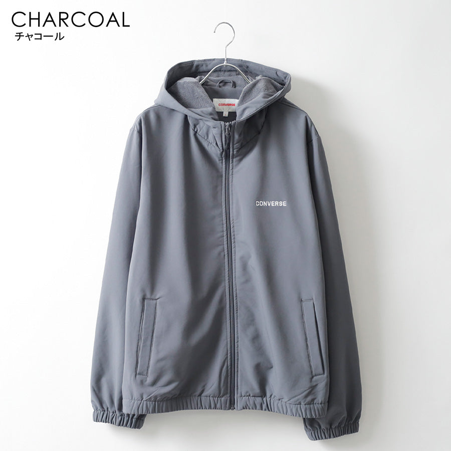 フード付きのフルジップパーカー型で、デイリーに取り入れやすいスタンダードなデザイン。左胸には「CONVERSE」のロゴ刺繍をあしらい、シンプルな中にアクセントをプラス。フロントには左右ポケット、裾と袖口はゴム仕様で冷気の侵入を防ぎ、保温性を高めつつ快適に着用できます。カラーはチャコール/ブラック/カーキの3色展開。