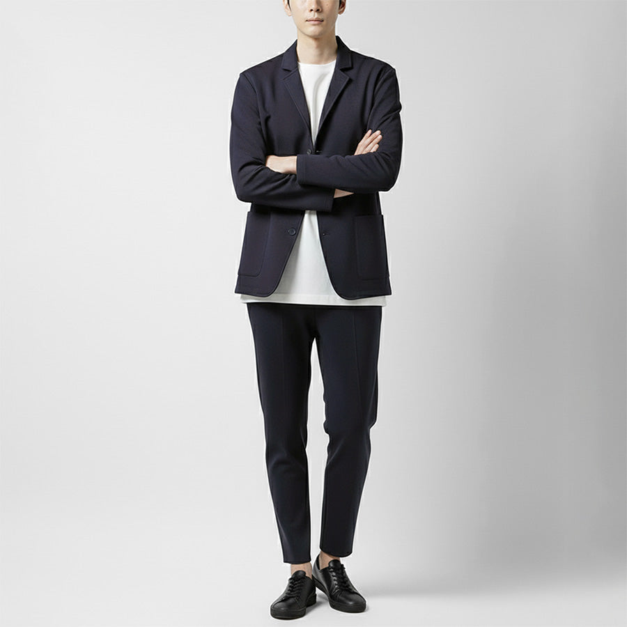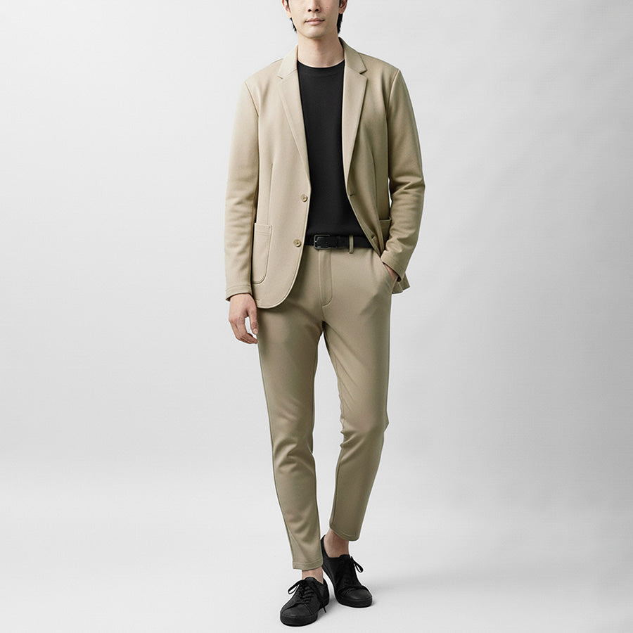インナーにTシャツやカットソーを合わせれば、程よく力の抜けたきれいめカジュアルスタイルに。シャツを合わせれば、オフィスカジュアルやきちんと感が求められるシーンにも対応します。セットアップとしての着用はもちろん、ジャケット単体・パンツ単体でも着回しやすく、幅広いスタイリングを楽しめる汎用性の高いアイテムです。