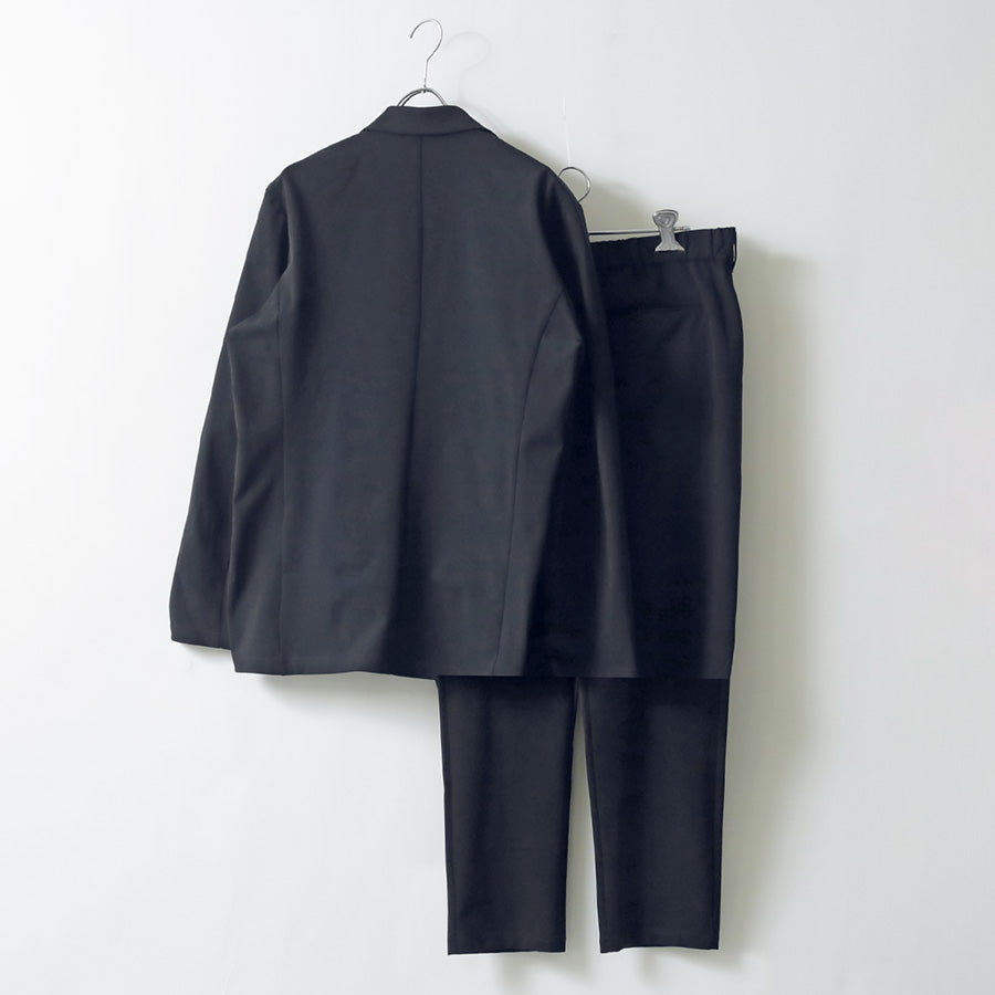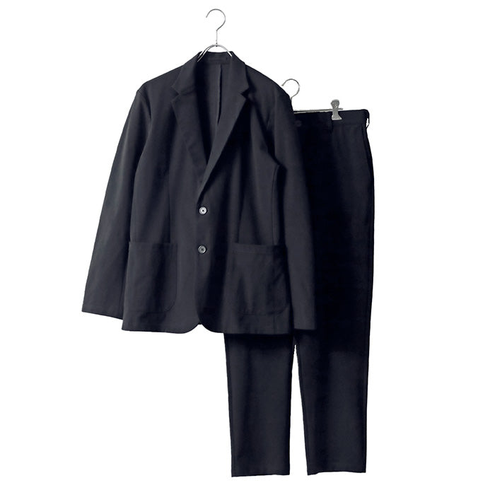 テーラードジャケットとイージーパンツを組み合わせた、きちんと感と快適さを両立したセットアップ。ジャケットは2つボタン仕様のベーシックなテーラードデザインで、フロントには実用的なポケットを2つ配置。シンプルながらも幅広いシーンに対応できる表情に仕上げています。