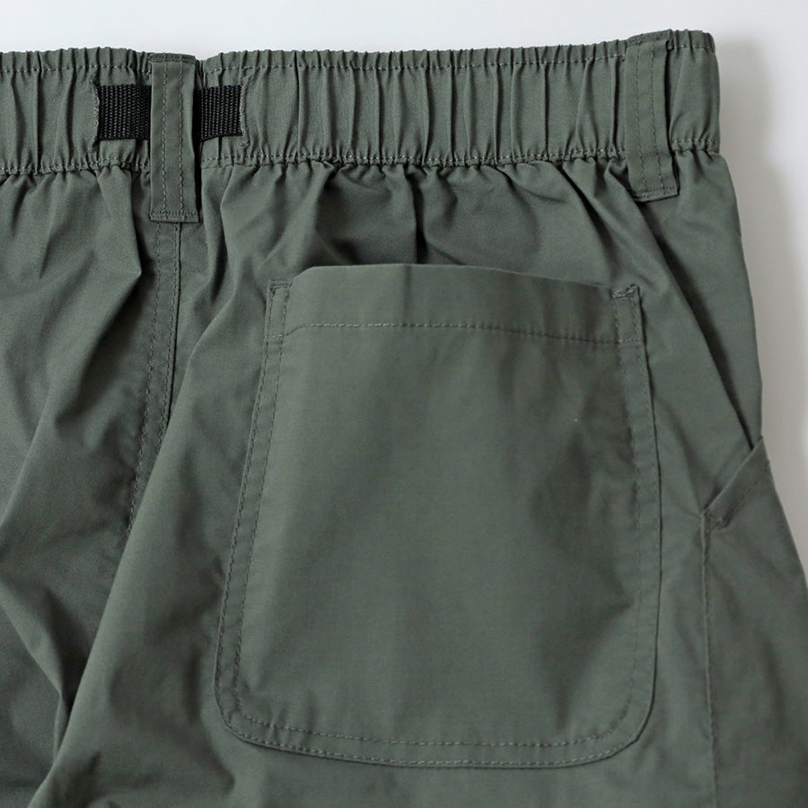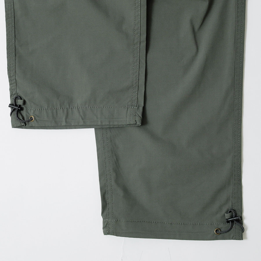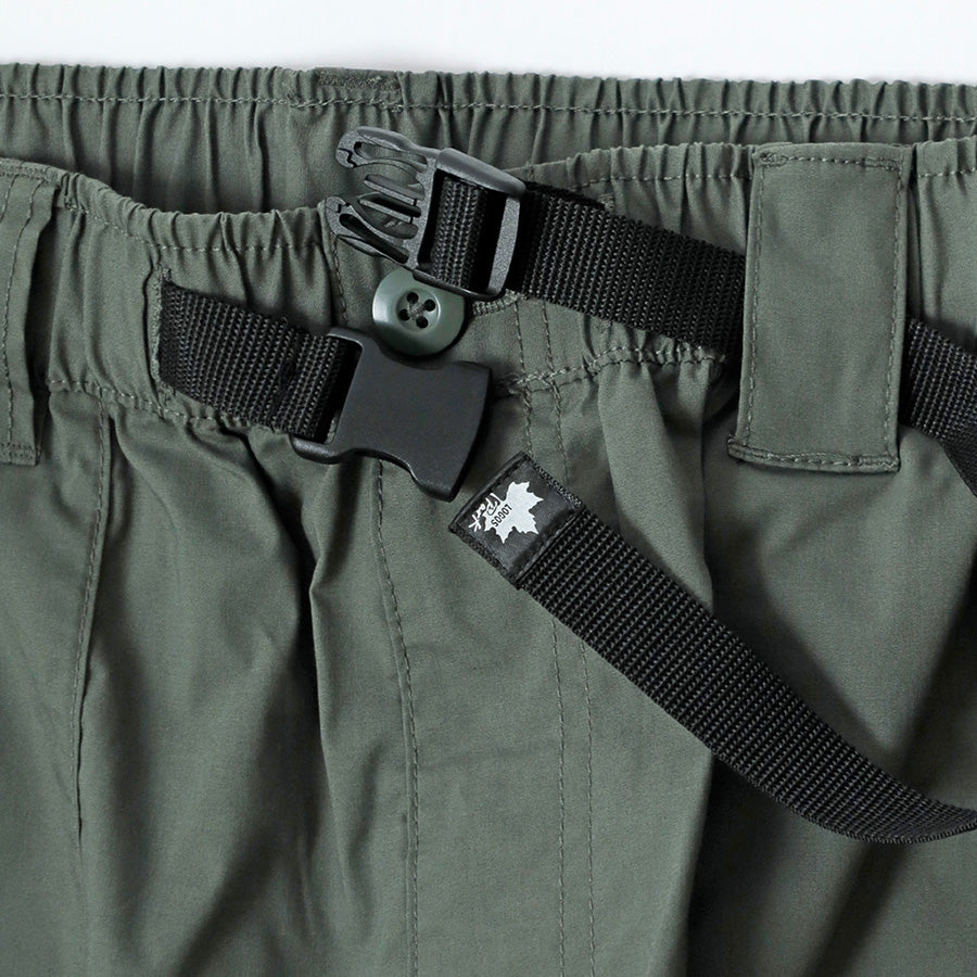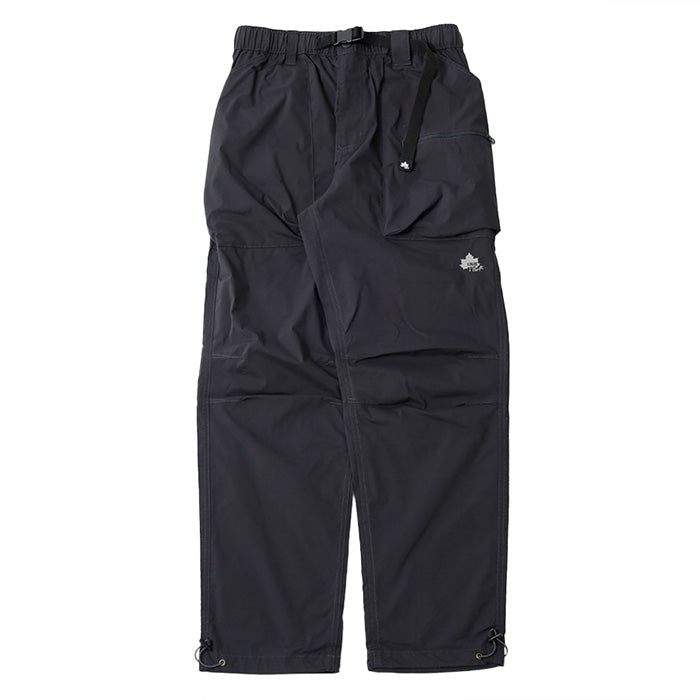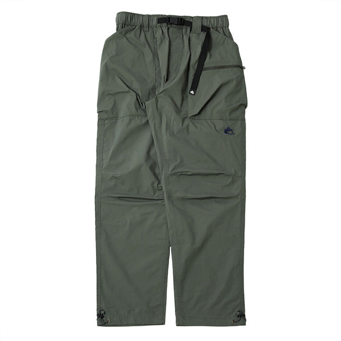 ウエストはゴム仕様に加えてベルト付きで、シーンに合わせた細かな調節が可能。ポケットはウエスト両側に加え、右サイドにジッパーポケット、バックにも1つ配し、必要な物を分類して持ち運べます。左前身には「LOGOS Park」のロゴ刺繍入りでさり気ないアクセントに。裾にはドローコードが仕込まれており、絞ることでシルエットに変化をつけたり風の侵入を抑えたりと、機能的な1本です。カラーはブラック/ベージュ/カーキの3色展開。