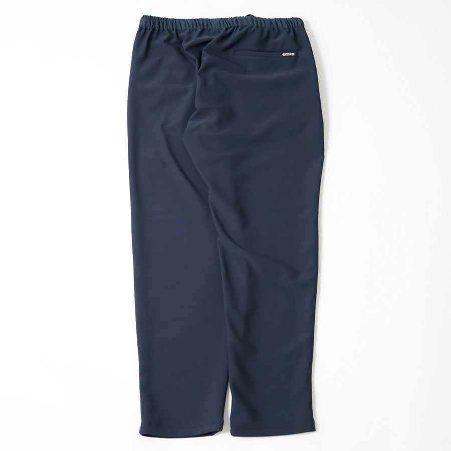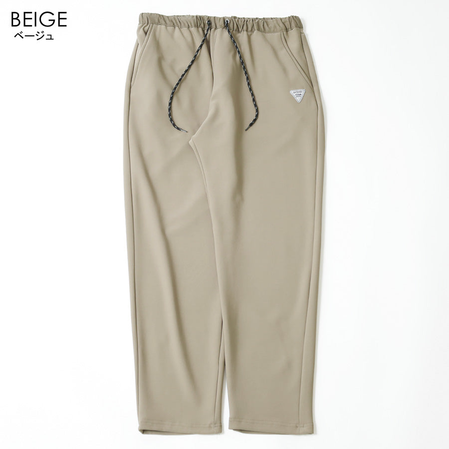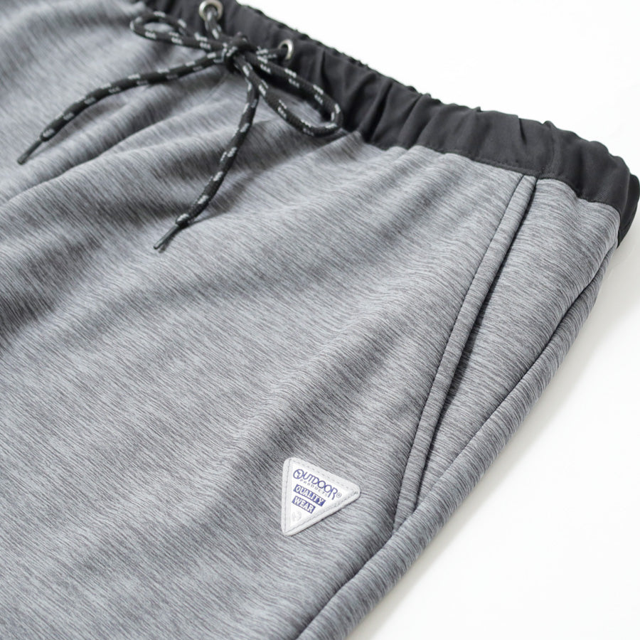 ウエストはゴム+紐仕様でフィット感を自由に調整可能。フロントに2つ、バックに1つのポケットを備え、利便性も◎。左前には「OUTDOORE」ロゴの別布ワッペンを配置し、さりげないアクセントに。さらにバックポケットにもロゴタグを縫い付け、ブランドらしさをプラス。シンプルながらも細部までこだわったデザインです。カラーはライトグレー、チャコール、ブラック、ベージュ、ネイビーの5色展開。