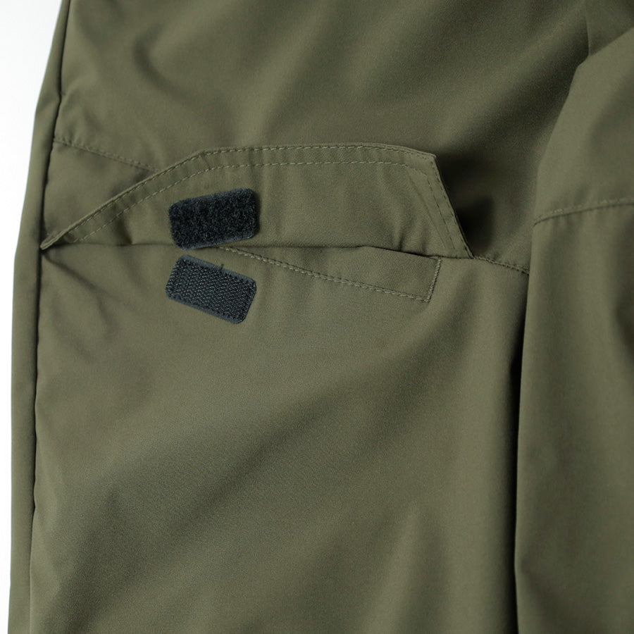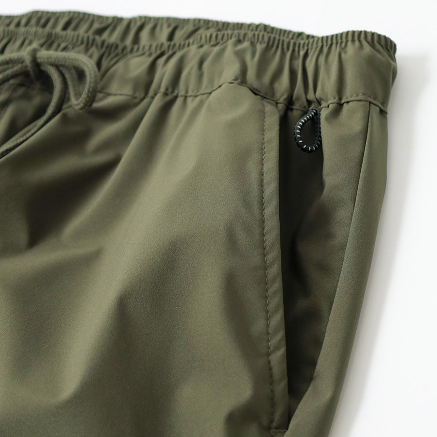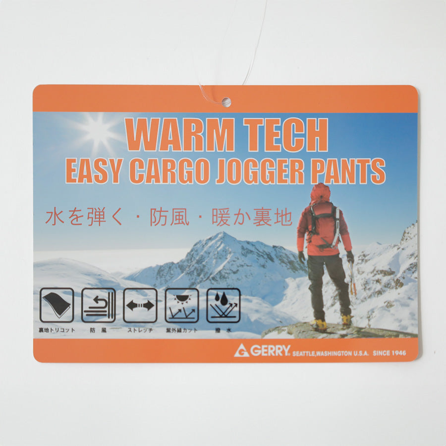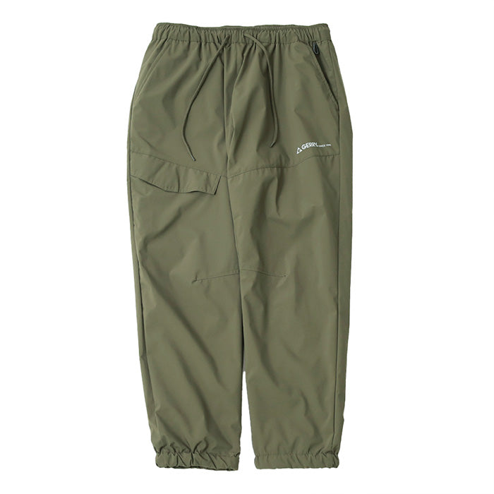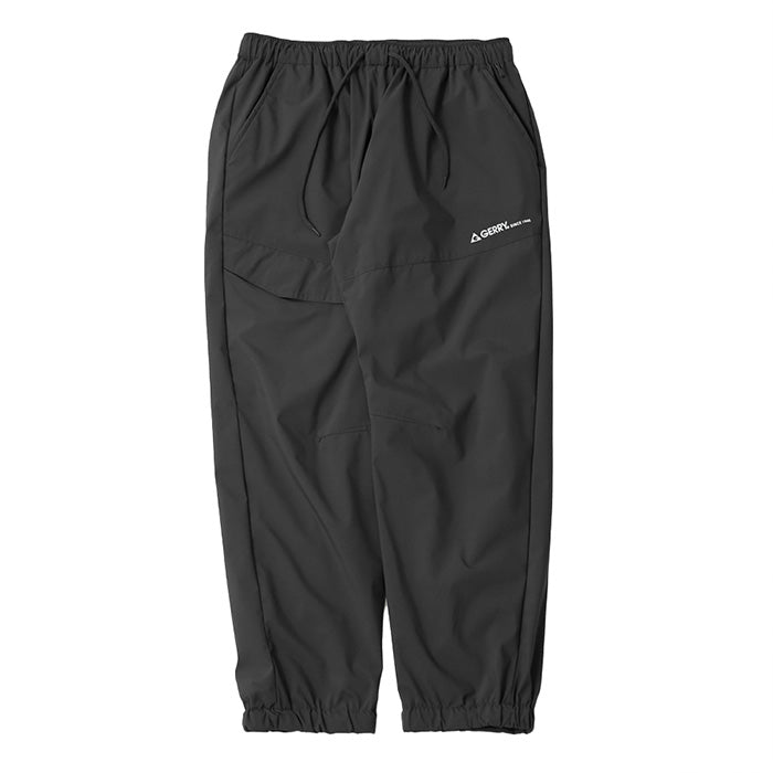 スポーティな印象のジョガーシルエットを採用し、裾のゴム仕様がすっきりとしたラインを演出。ウエストはゴム+紐でサイズ調整も簡単です。ポケットはフロント×2、バック×1に加え、右脚サイドにポケットを配置。アウトドアやレジャー時の収納にも便利です。左前には「GERRY」のロゴプリント、バックにはブランドタグを施し、デザインのアクセントに。カラーはダークグレイ、ブラック、カーキの3色展開です。