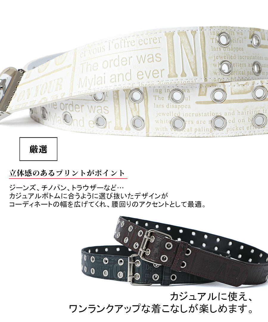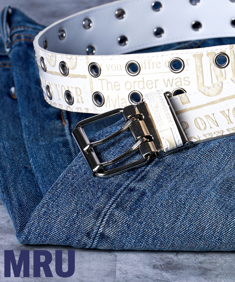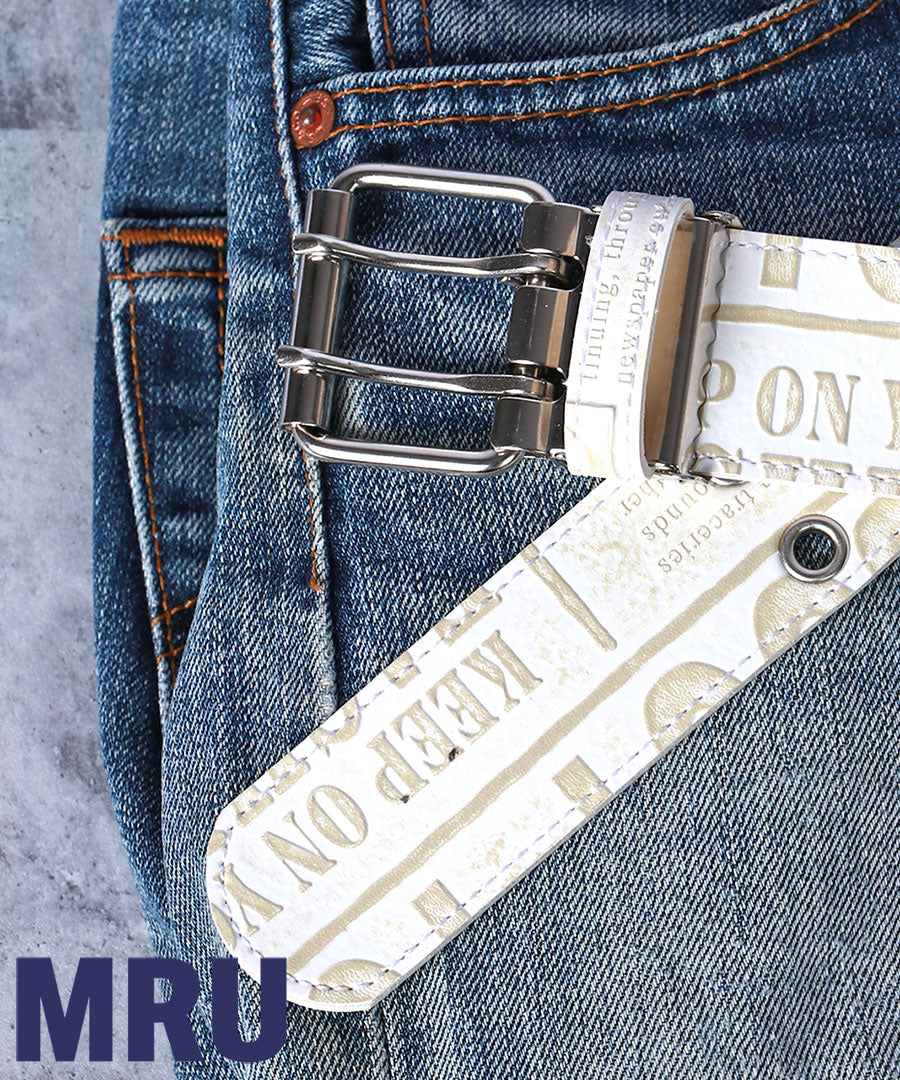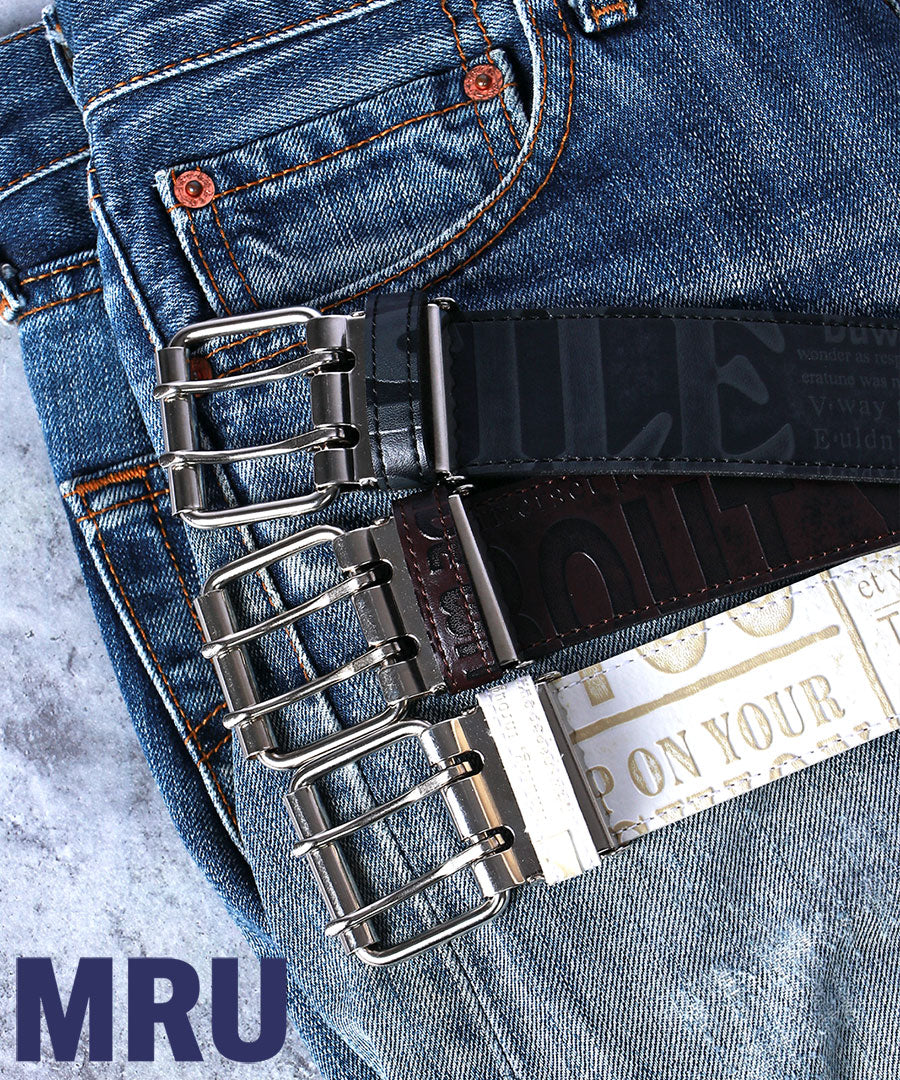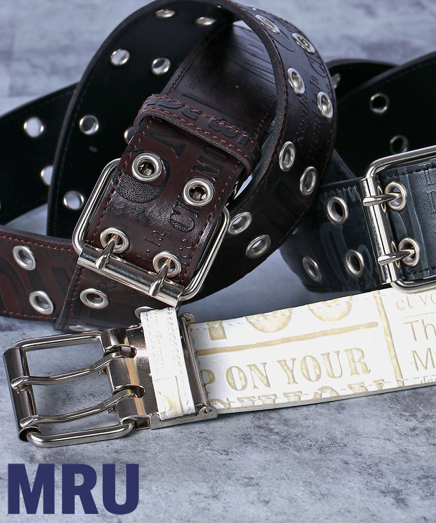 MRU エムアールユー ベルト メンズ PUレザー ダブルピン Wピンベルト ロングベルト ハトメベルト 革ベルト 日本製(7718490279)