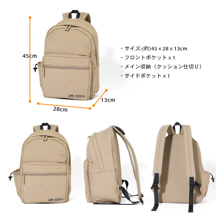 Lee リー リュック メンズ レディース ユニセックス ブランド ロゴ プリント 大容量 バックパック ポリエステル フロントポケット×1 バックポケット×1 サイドポケット×1(7747840012)