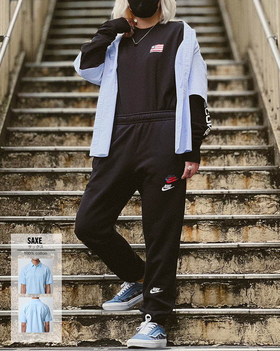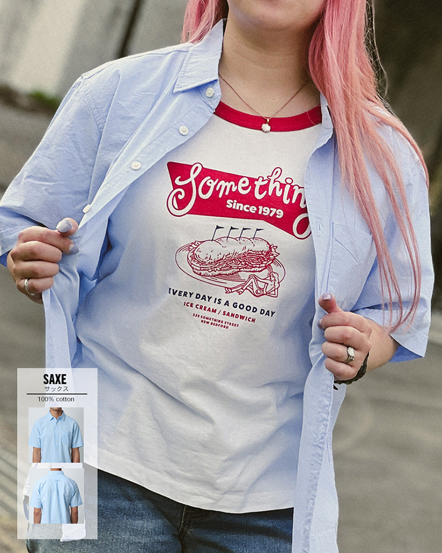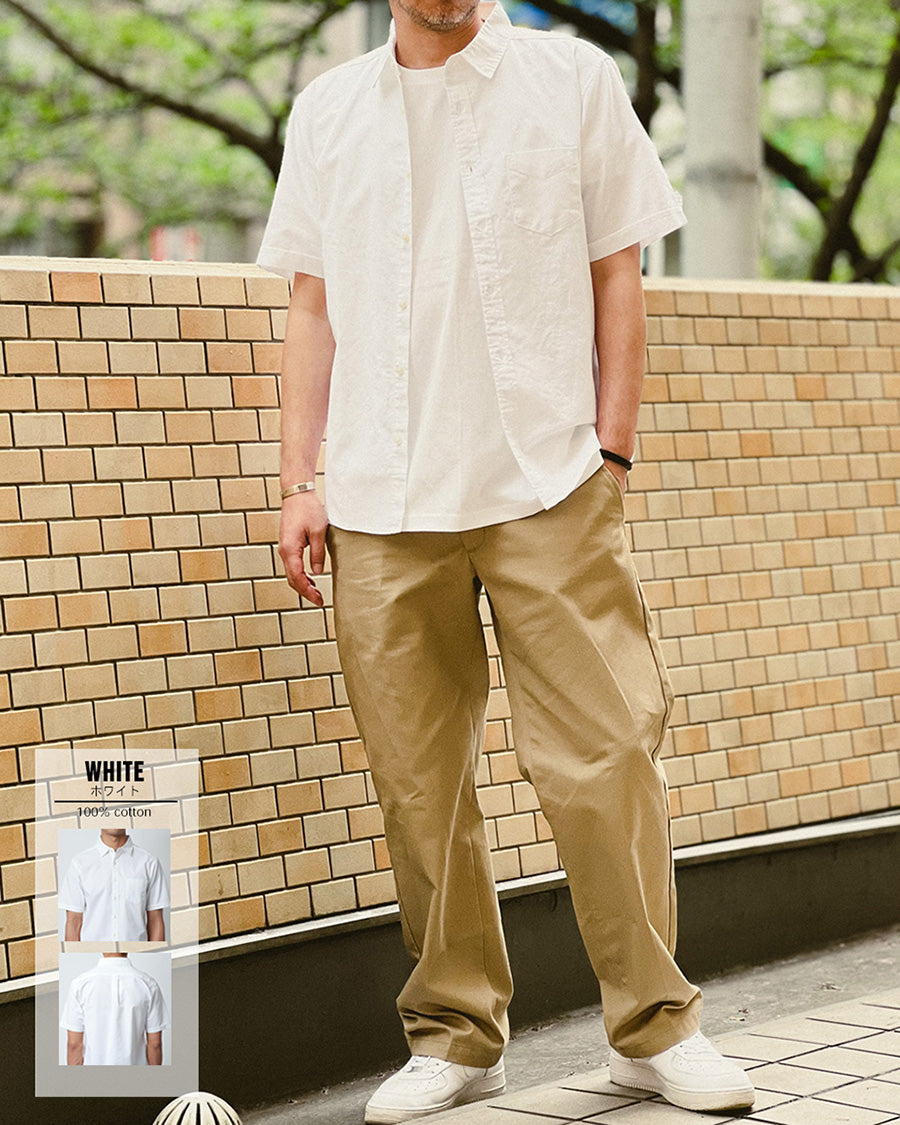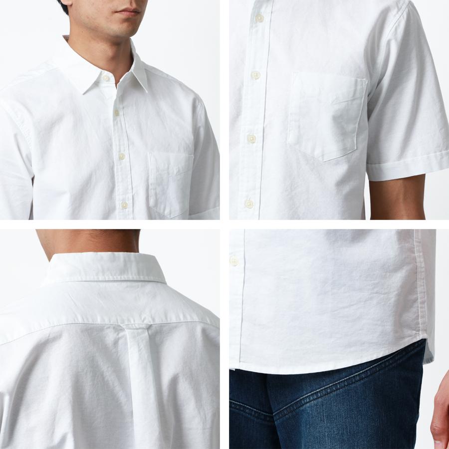 ・ベーシックに使えるレギュラーカラーの半袖シャツ。厚くて丈夫、ソフトで通気性も良くシワになりにくいオックスフォード素材を使用しています。綿100%で着心地がよく、なめらかな肌触りも◎さまざまな雰囲気が楽しめるシンプルデザインでこなれ感をプラスする無地シャツです。